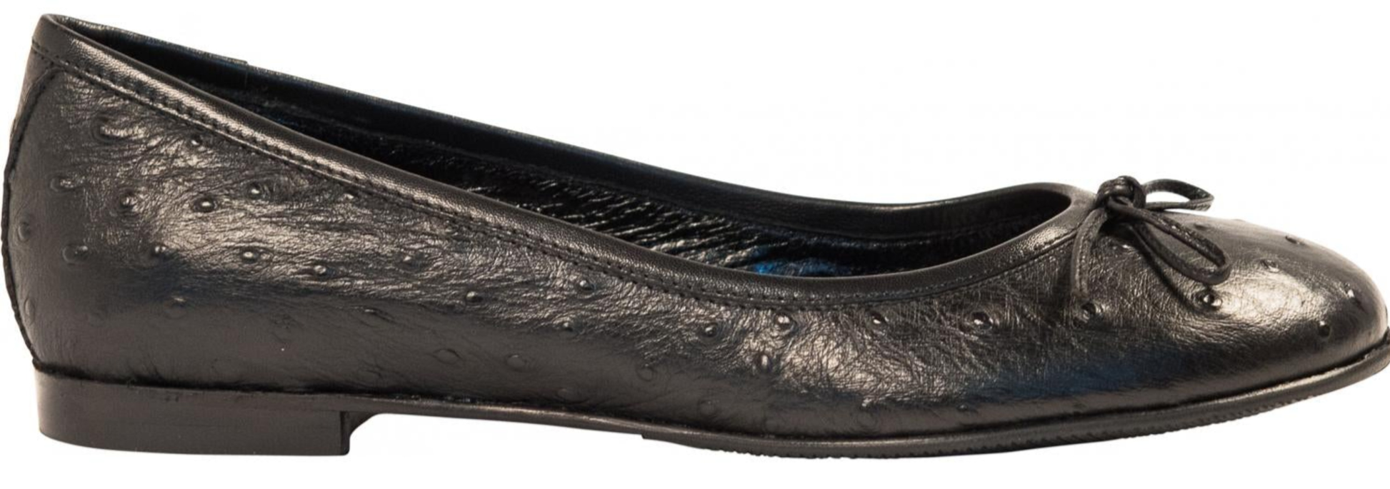 * Black Ostrich Leather Dip Dyed Nappa Leather Ballerina Flat with Bow