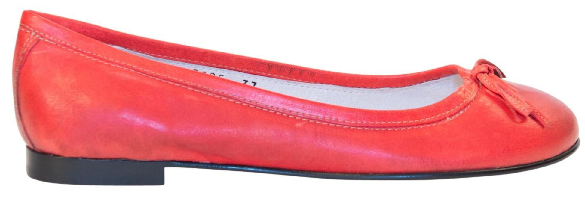* Red Dip Dyed Nappa Leather Ballerina Flat with Bow