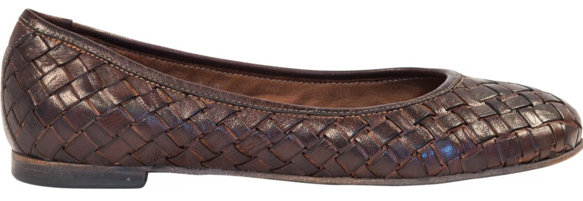 * Handwoven Dip Dyed Brown Nappa Leather Ballerina Flats