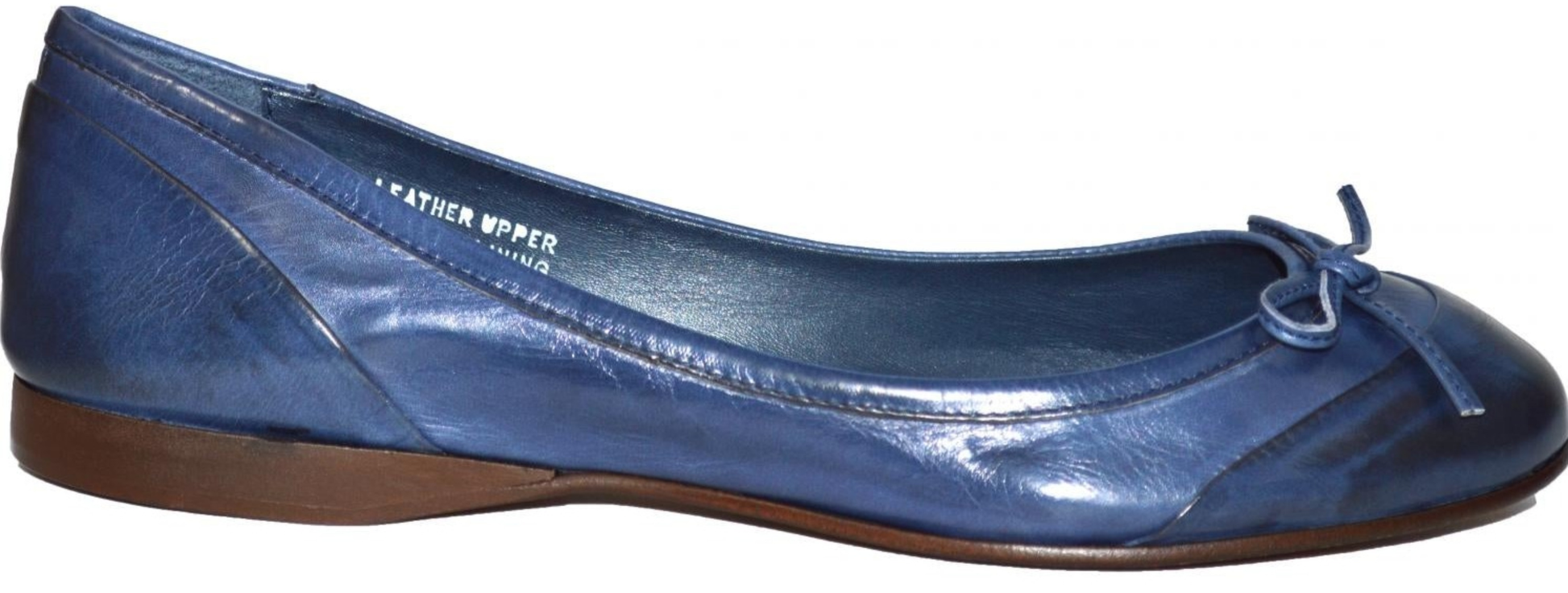 * Dip Dyed Navy Blue Nappa Leather Ballerina Flat with Bow