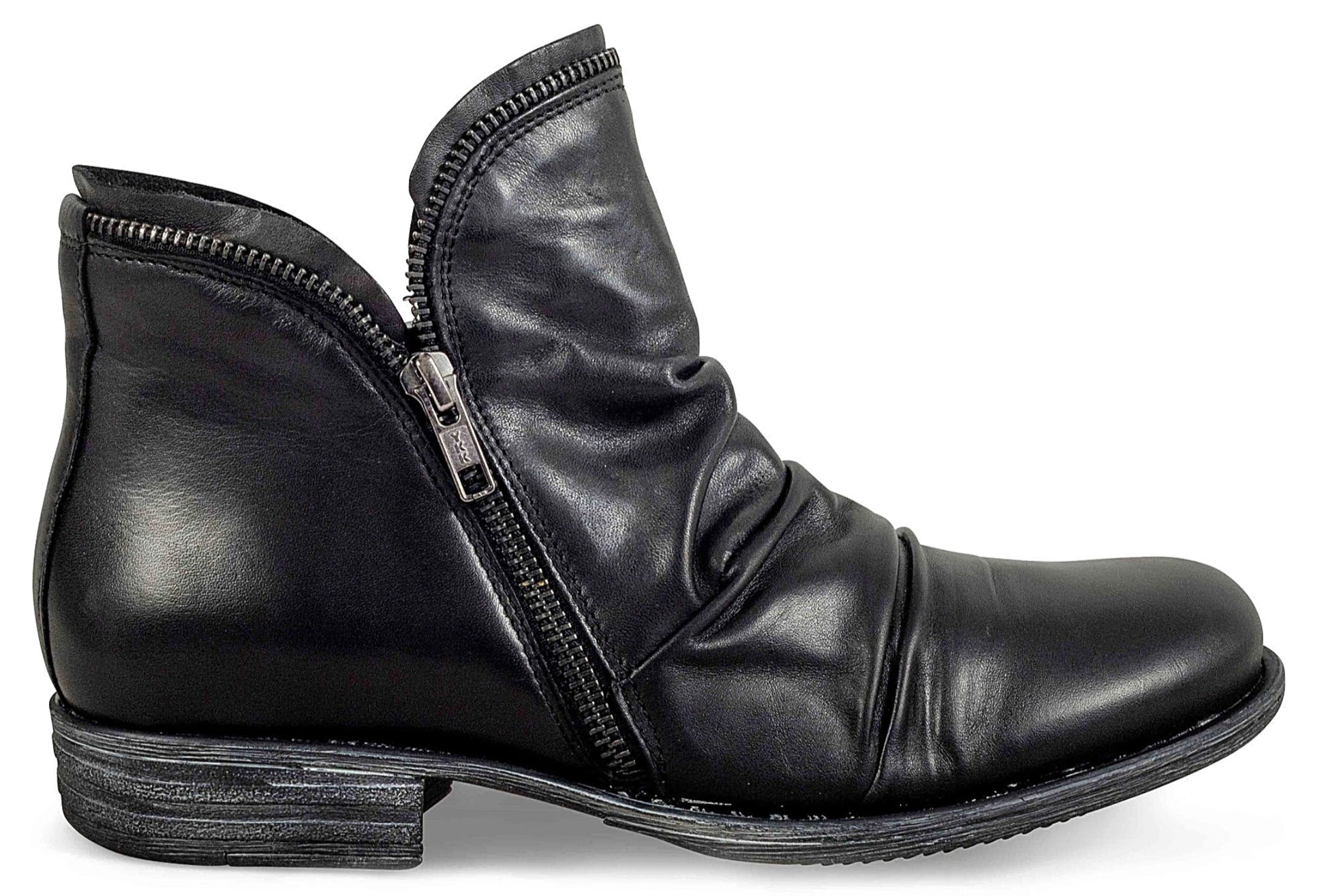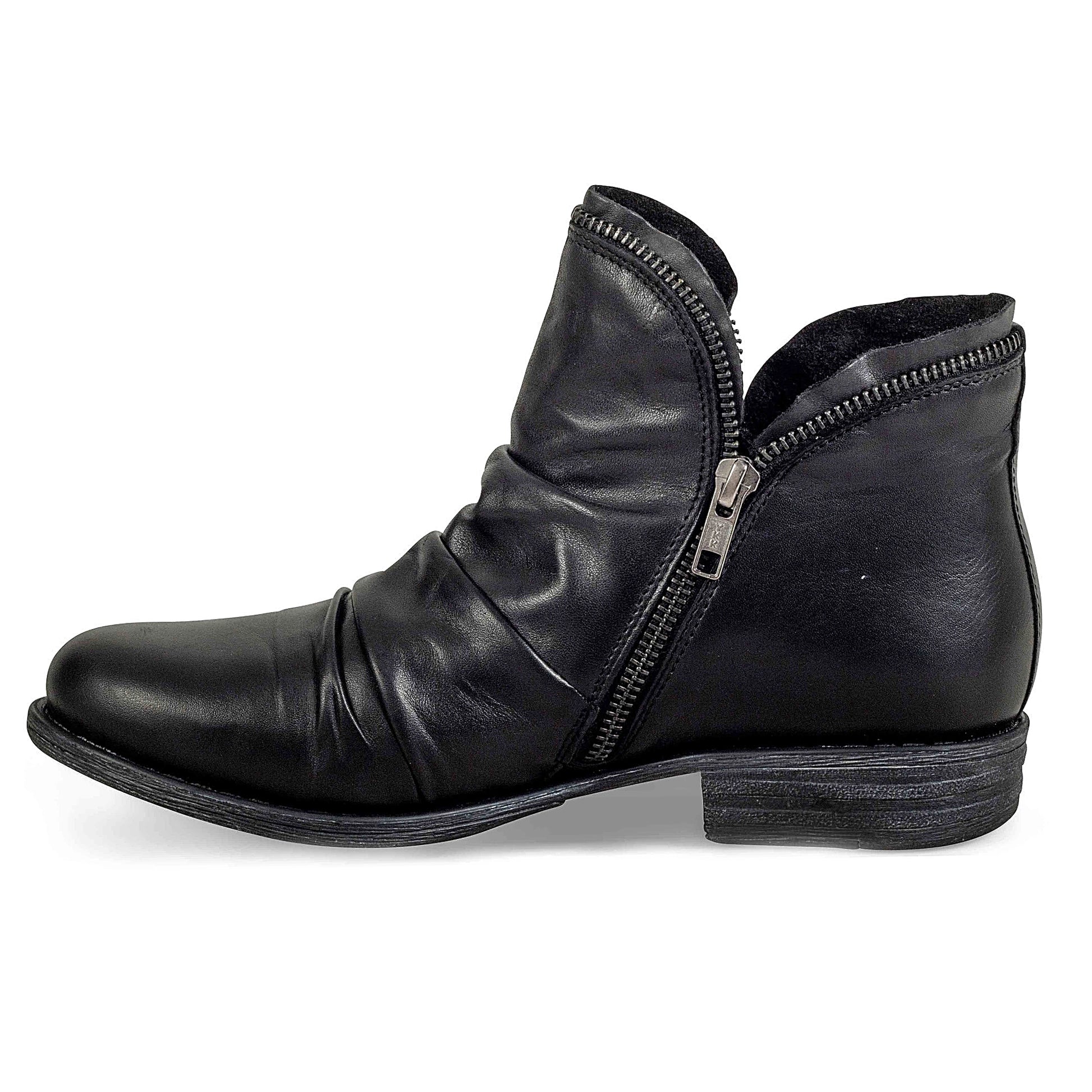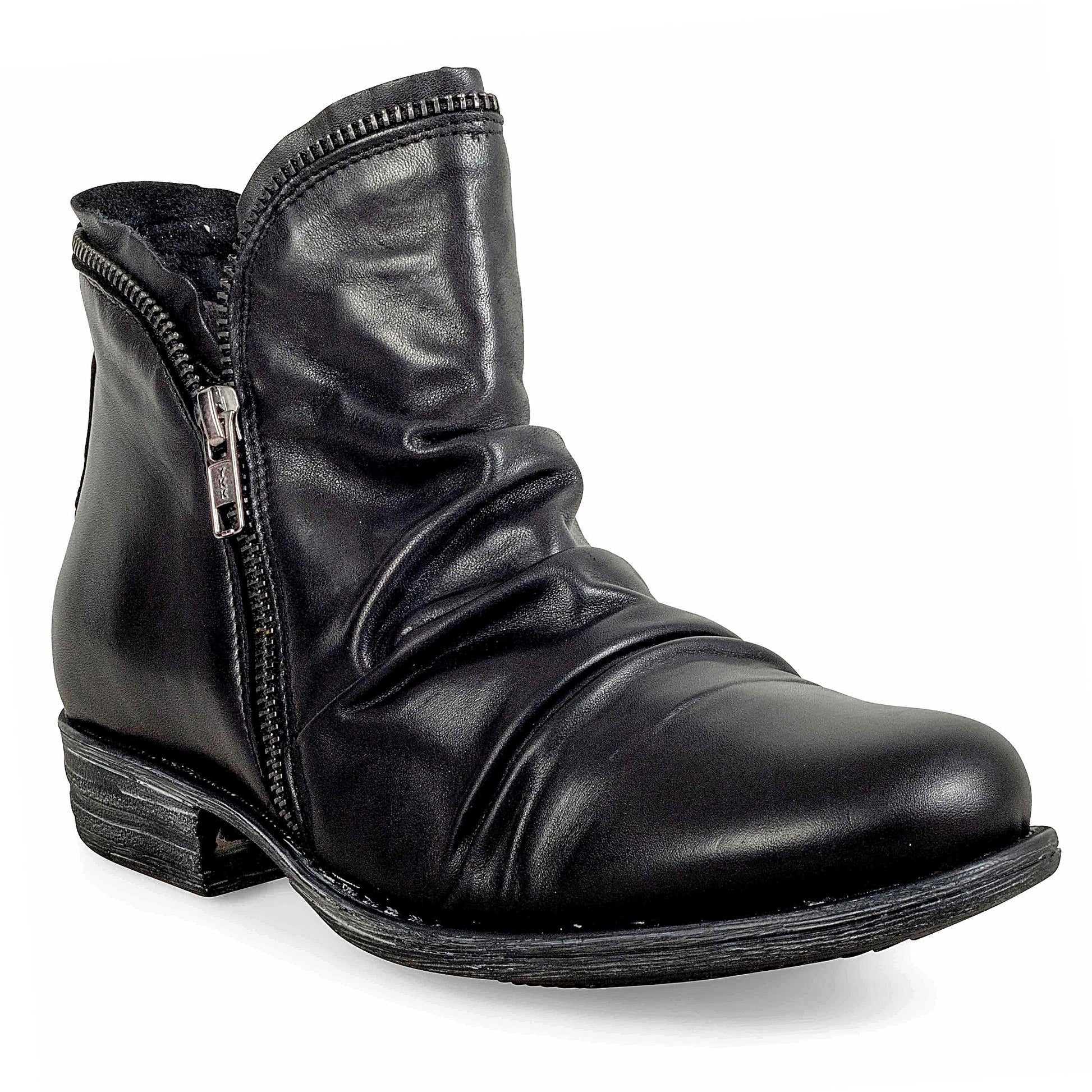 Add a bold touch to your fall wardrobe with the Miz Mooz Luna Ankle Boots, where statement style meets everyday comfort. These fashion forward boots feature a high ankle silhouette with soft, ruched leather that hugs your foot for a flattering and secure fit. The signature inner zipper makes them easy to slip on, while the cushioned footbed ensures all day wearability.